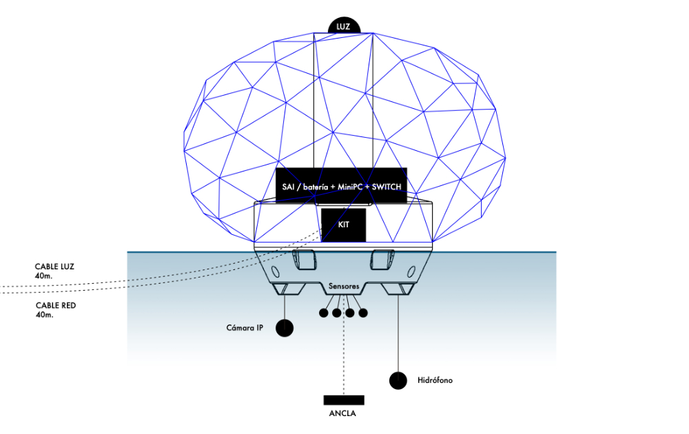 De esta manera, planteé una doble intervención (tanto en el paisaje exterior como en el interior de la sala de exposiciones) de manera que las "hidropoéticas" entrasen en simbiosis con el entorno natural y artístico mediante dos dispositivos: uno de toma y emisión de datos (dentro, sobre y alrededor del agua del embalse) que, a su vez, está conectado a un segundo artefacto en forma de Theremin personalizado, que recepciona, visualiza, sonoriza y facilita la manipulación de datos a través de la interactividad en tiempo real. Con ello se crea un ambiente audiovisual performativo dentro de la Sala El Molino del Museo a través del cual, el visitante puede “comunicarse” con el embalse. Cabe recalcar que la personalización escultórica del Theremin conecta formalmente con la memoria especifica del lugar, como lavadero de lana que fue en su momento, al tiempo que posibilita la sincronización del paisaje sonoro y la señal de vídeo subacuático a través de la inmersión y corporeización del visitante con la instalación artística.