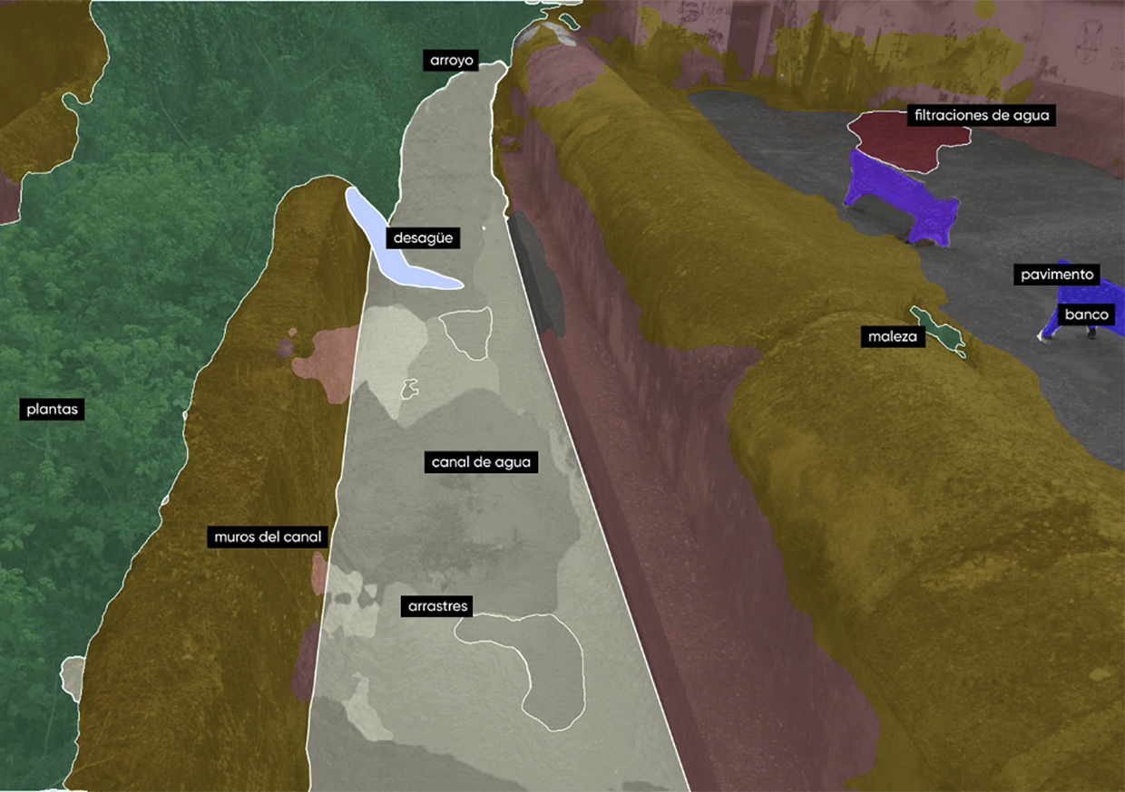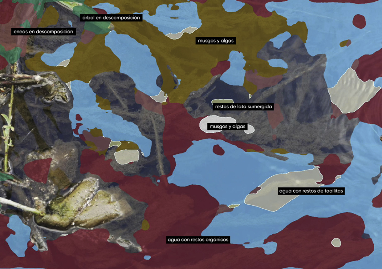 In the video editing process, I utilized an artificial intelligence tool with object recognition capabilities via machine learning, which allowed me to map the various elements present in the image. My objective was not limited to evaluating whether the water composition met the technical-sanitary criteria for potability, but also to identify the human imprints etched into the riparian landscape. In other words, I sought to evidence and interpret the anthropic traces that narrate the history, present, and future of coexistence between human and non-human entities. The question that arises is: What is the water communicating to us? What map do its data plot? Are we willing to listen to and translate its data?