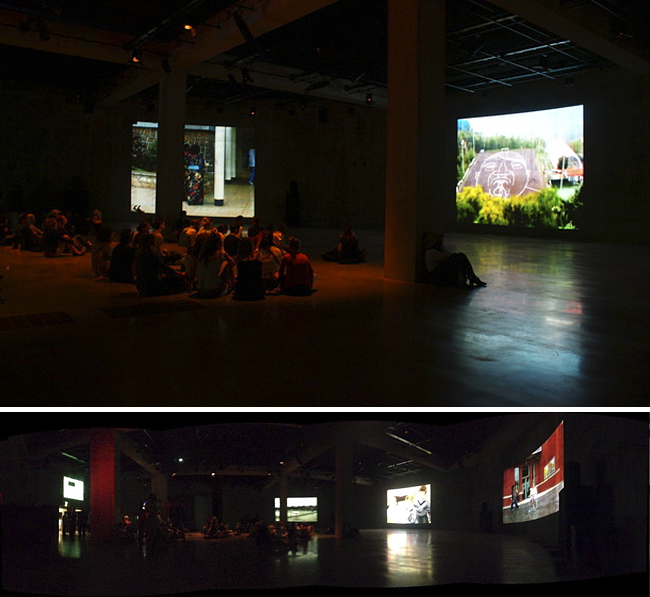 “Santiago Morilla asume el espacio museístico como si fuera una piscina donde se pueda disfrutar del baño “o simplemente ‘hacer el muerto’ y dejar a flote tan sólo la cabeza que sujeta un flotador chamánico (con forma de zorra, pato u oso)… de alguna extraña manera siento que estoy incluyendo estas historias locales en un –más extenso y público- mapa emocional, que les redime de su oscura inmersión del olvido. Además, qué mejor que un centro de arte para ocultar bajo la línea de flotación el culo pelado de un bañista inocente (calculo que a la altura de las oficinas de administración estarán las partes nobles)”. En su labor de inmersión contextual, Santiago Morilla no pasa por alto que en la isla de Daebudo, donde está emplazado el GCC, se estableció durante los 35 años de la invasión japonesa el orfanato Seongan que, en realidad, era un campo de concentración y trabajos forzados. Algunos de los niños que intentaron escapar a nado de esa cruel reclusión no encontraron sino el camino más rápido a la muerte: los cuerpos ahogados reposan en los bosques de las inmediaciones. No hay, ni mucho menos, en el imaginario de Santiago Morilla una voluntad de hacer explícitas las historias de las que se ha nutrido pero tampoco quiere que su pieza sea tratada como un mero efecto ‘esteticista’, al contrario, deja abierto el sentido pero también condensando narraciones y metáforas que revelan un sustrato inquietante.